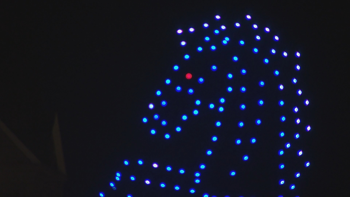 “Comenzamos poco a poco, con 100 drones”, dijo Dolan. En los últimos 40 días, su equipo ha realizado alrededor de 80 espectáculos, incluido el Mile High Drone Show.