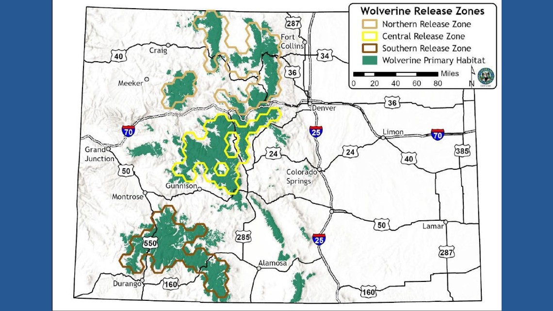 El plan muestra cómo CPW introduciría 15 glotones por año durante tres años. Según el plan de recuperación de CPW, hay tres zonas de liberación designadas en tierras públicas que le darían al animal las mejores posibilidades de supervivencia.