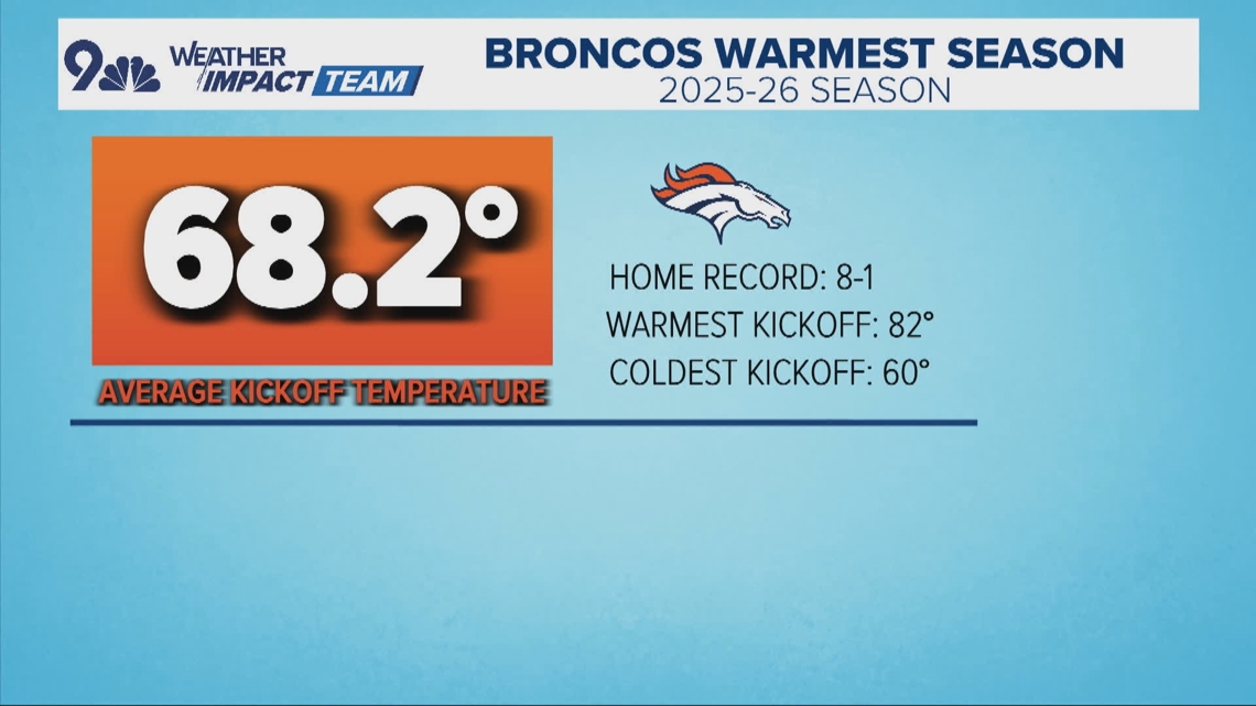 No sorprende que los Broncos hayan tenido tan buen clima en sus partidos en casa esta temporada, ya que la ciudad de Denver tiene un invierno inusualmente cálido. Es posible batir un récord de más días de 60 grados en una temporada de invierno.