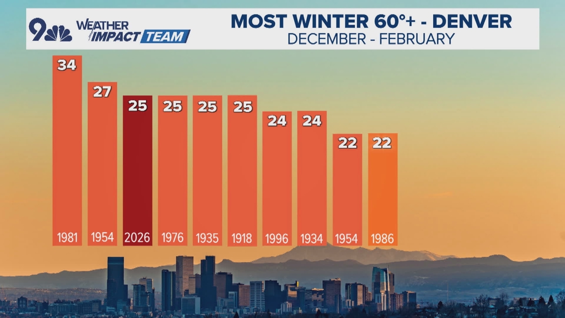 El récord fue de 34 días de 60 grados en el invierno de 1980/81. El martes fue el día número 25 de 60 grados en Denver en lo que va del invierno, y todavía tenemos la mitad de enero y todo febrero por delante. Según los registros meteorológicos, la temporada invernal se extiende durante los meses de diciembre, enero y febrero.